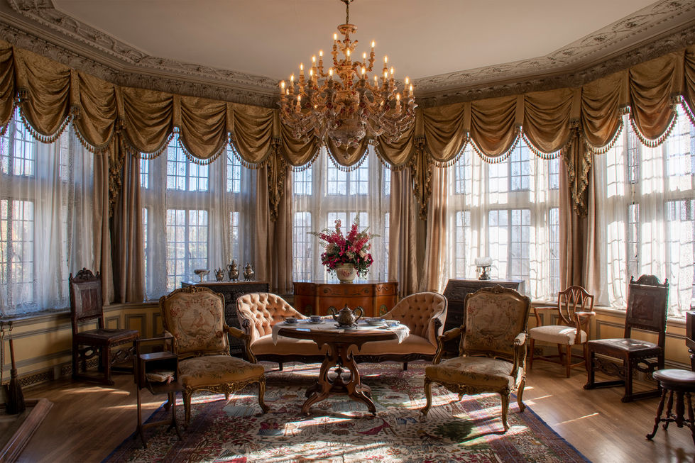 Explore the elegance of vintage furniture and ornate fireplaces in these beautifully lit rooms. The sunlight adds a warm and inviting atmosphere to the space, creating a perfect blend of classic and modern design elements.